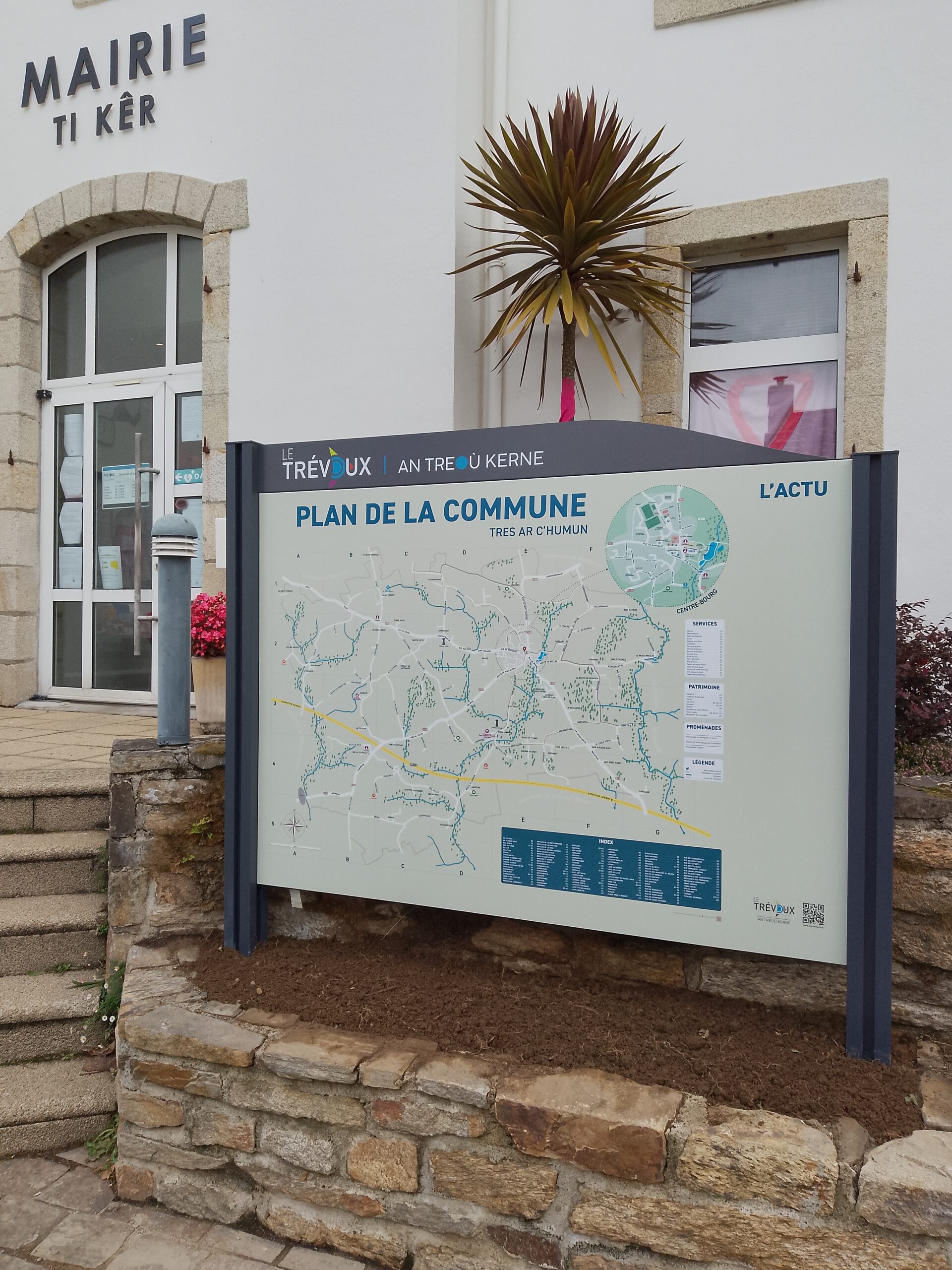 Élaboré conjointement avec les élus et les agents communaux, ce projet s’est voulu “local”. Merci à Emilie Le Coz (« La petite graphiste », Mellac) pour sa conception, ainsi qu’à Concept Enseignes (Guidel) pour sa fabrication.